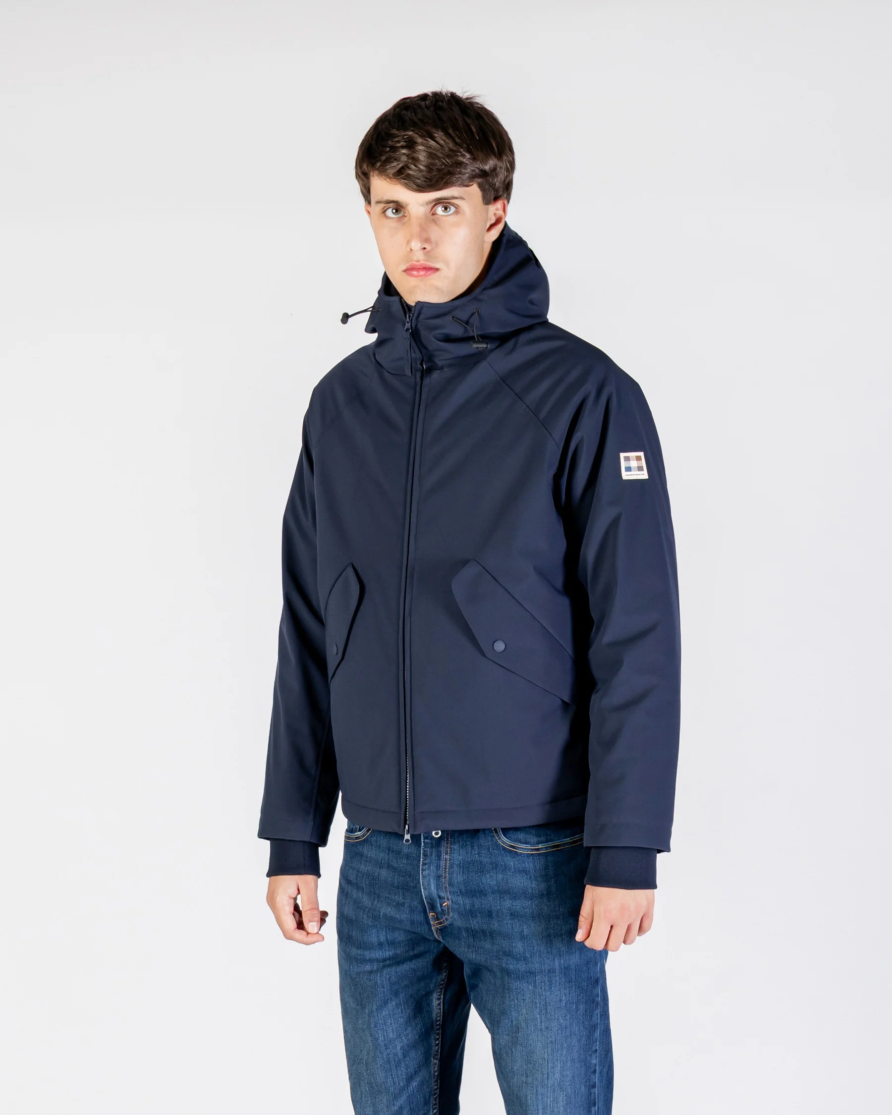 Una reinterpretazione moderna del parka, realizzato nel nostro tessuto soft shell, che garantisce protezione, comfort e performance tecnica. La costruzione raglan assicura libertà di movimento, mentre il design è arricchito da due tasche diagonali applicate sul fronte, ciascuna con un dettaglio in Club Check all’interno della patta come richiamo heritage.