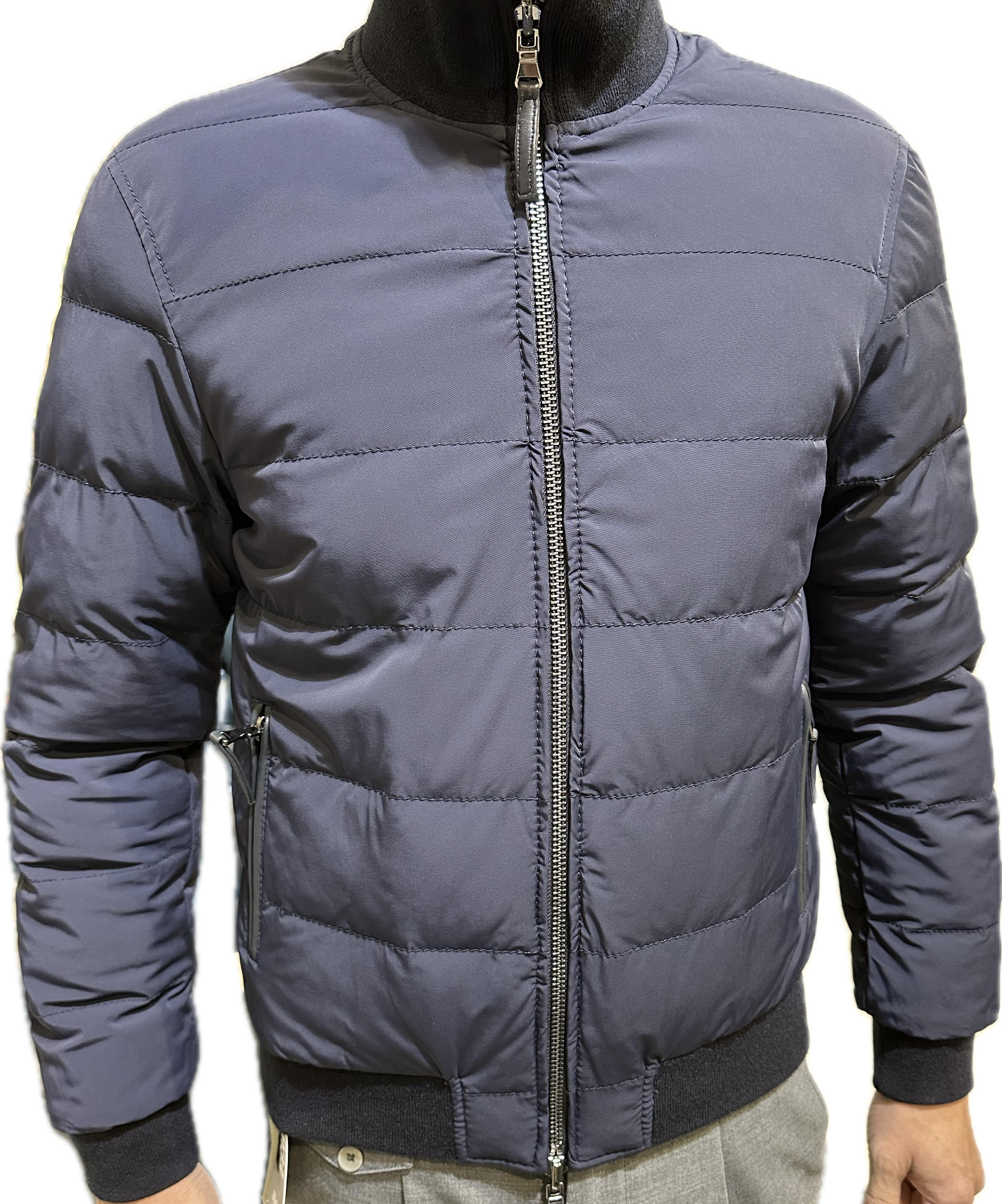 La chiusura frontale con zip a doppio cursore, le tasche laterali con zip metalliche e i polsini e fondo in maglia elasticizzata ne esaltano la funzionalità, mantenendo al tempo stesso un’estetica elegante e moderna. Perfetta per la stagione autunno/inverno, è la giacca ideale per chi cerca stile e qualità senza compromessi.